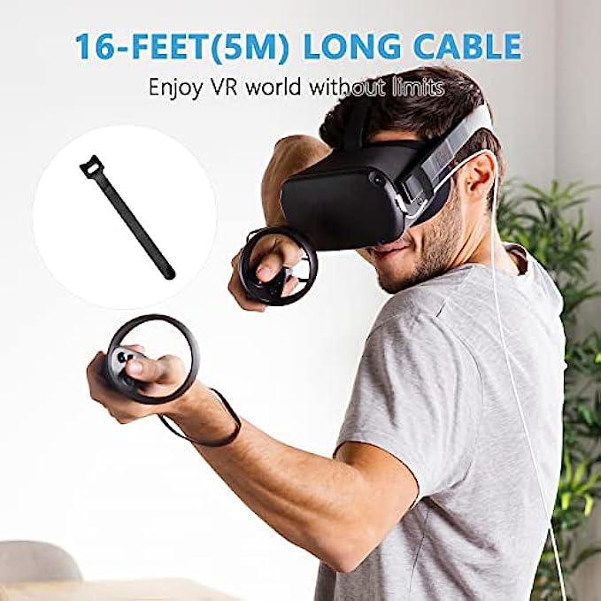 ✅【Compatible for Oculus Quest 2】This 16ft (5m) link cable connects Oculus Quest and Quest 2 to a gaming PC, then you can play all the Rift S games and Steam VR games. This Oculus Link Cable basically turns your Quest into a Rift S, as long as you have a decent enough PC to run it. Must have for Oculus Quest 2 if you want to access a library of games that you can not get on the wireless standalone headset.