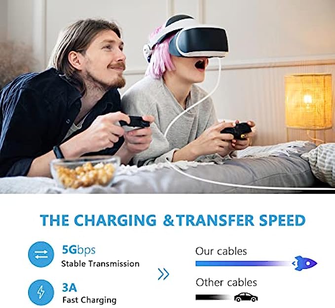 ✅【USB3.2 and Fast Charging Cable】VR link cable offers 5 Gbps transmission speed and charging with a maximum current of 3A. It offers the best gaming experience while connecting Oculus 2 to steam and twitch stream. This Link Cable allows you to charge your Quest/Quest 2 VR headset while playing. Never worry run out of power while in the middle of your game.