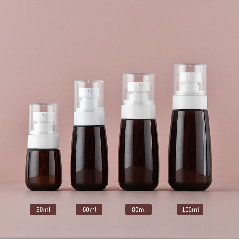 Bought all the different sizes of spray bottles to see the difference. Pic shown is 100ml used to contain hydrosol as toner. Bottle is a bit rounded and curvy, minimalist design super pretty. Spray came out as mist very comfy to spray on face. Happy with purchase.