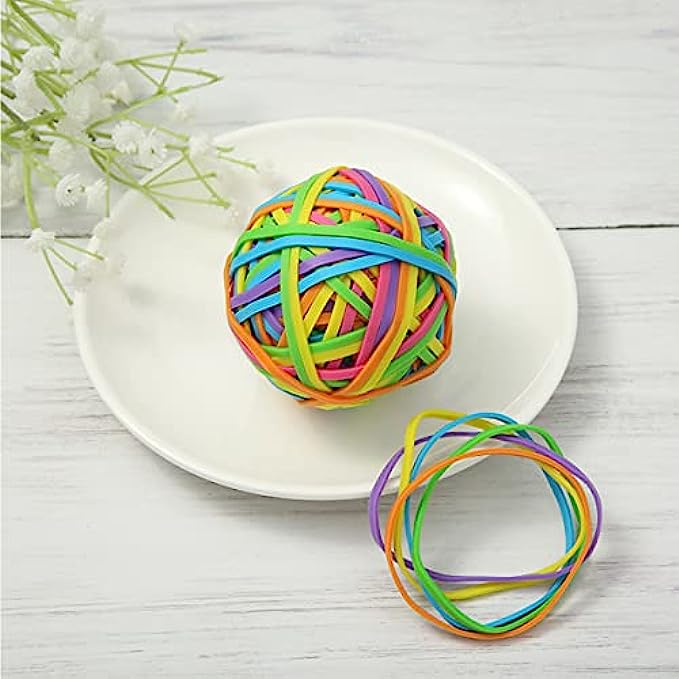 • Approximately 170 bands per ball,the diameter of the rubber band is about 5.0cm,rubber bands size:Diam 50mm*width 3mm.