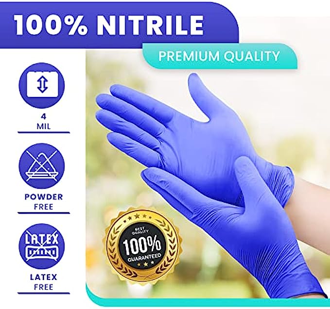 Imported Pull On closure BEST DISPOSABLE GLOVES? OWELL nitrile gloves are made of 100% premium medical-grade, and food-safe nitrile materials. These high-quality and perfectly balanced nitrile gloves are super-strong, 4mil thick, chemical, tear, and puncture-resistant. They offer incredible stretch and durability, are ambidextrous, latex-free, powder-free, vinyl-free and finger textured providing a safe and secure grip with every use. EXTREMELY COMFORTABLE: OWELL disposable gloves X-Small won’t slide around loosely or restrict blood flow and has incredible elasticity. OWELL latex free disposable gloves are the preferred nitrile rubber gloves by many health care providers due to the allergies associated with latex gloves. OWELL gloves are silky smooth to the touch, no tearing or pinching, with smooth-finished beaded cuffs. Our disposable rubber gloves are for all-day, everyday use, for professionals and individuals alike. BARE HAND & TOUCH SENSITIVE: Do you take off your gloves for every chore that requires finger sensitivity? OWELL X-Small disposable gloves are supper comfortable with bare hand sensitivity. Our powder free, viny free and latex free gloves are touchscreen sensitive and electronics user-friendly and are comfortable to wear for extended periods of time. Now you can make those reminders on your smart device without taking off your disposable gloves. MEDICAL GLOVES: OWELL nitrile examination gloves are certified, compliant, and approved for medical use. OWELL medical exam gloves are non latex, non sterile, single-use only, chemical & puncture resistant and are the go-to choice gloves disposable latex free X-Small for doctors, nurses, physicians, first responders, pharmacists, labs, clinics, and health care providers. FOOD & KITCHEN GLOVES: Are your current disposable cooking gloves food safe? Protect yourself and those around you from ingesting some of the harsh and toxic chemicals found in non-safe food prep gloves. Our medical-grade non latex food service gloves are not only chemical safe, but they are also tear and puncture-resistant, protecting your hands from transmitting food-related bacteria while handling raw & unprocessed foods. OUR FOREVER GUARANTEE! OWELL Health is committed to providing the highest quality health & wellness products and best in class customer service & product support. When purchasing an OWELL branded product, you can rest assured that your product was manufactured to the highest quality and safety standards and is backed by our money back guarantee policy (within 90 days of purchase).Should you need any assistance with your purchase, please call or email our live customer support team.