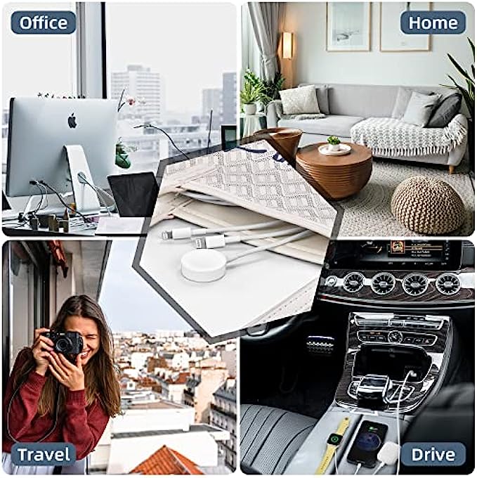 • 3 in 1 Portable Design:Updated 3 in 1 design,buy one get three chargers. 4.9ft/1.5m apple watch charger cable is convenient for office/home/travel/drive.