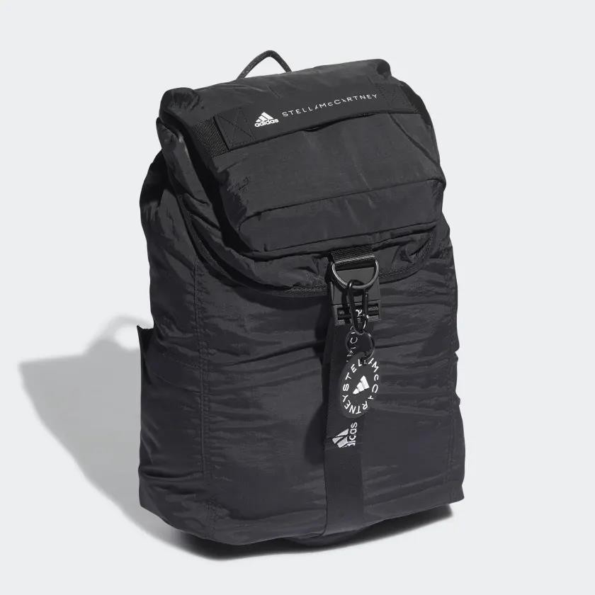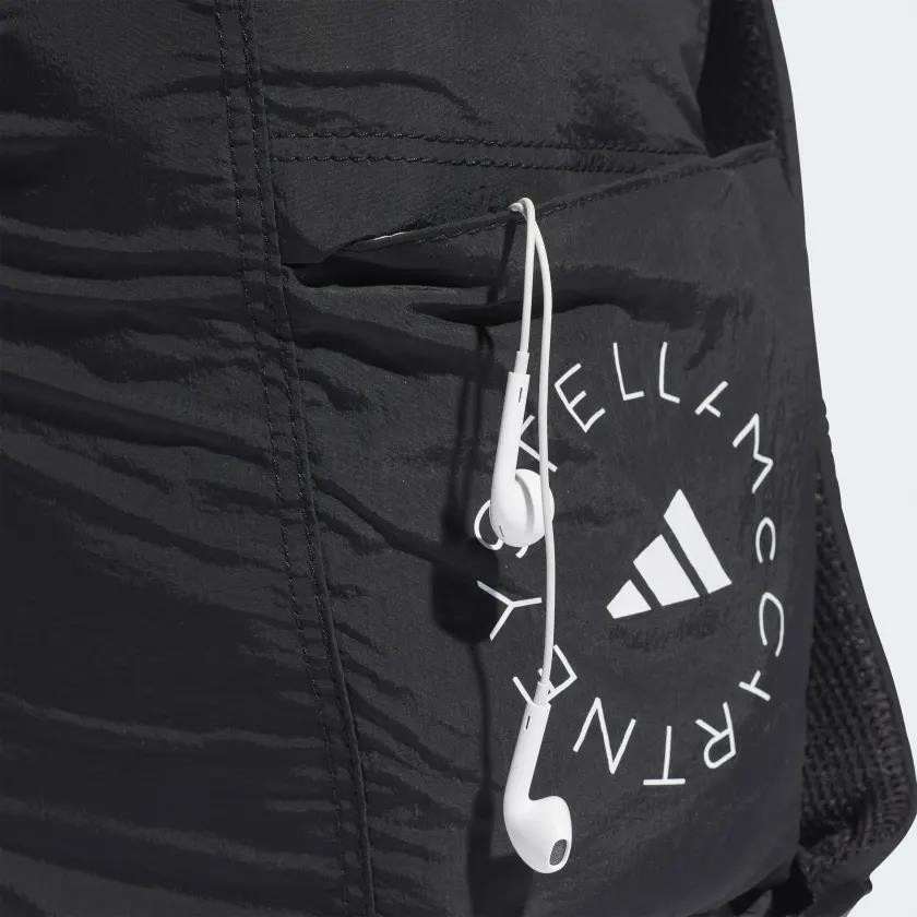 No matter how you plan it, some days just feel like you're moving from one thing to another all in one breath. First of all, breathe. Secondly, make sure you have this adidas by Stella McCartney backpack. The stylish essential is full of tricks. Expandable details give extra storage to the side zip pockets, and adjustable straps securely carry your jacket or yoga mat without taking away space. All the things you need, all in one place. Made with a series of recycled materials, and at least 60% recycled content, this product represents just one of our solutions to help end plastic waste.