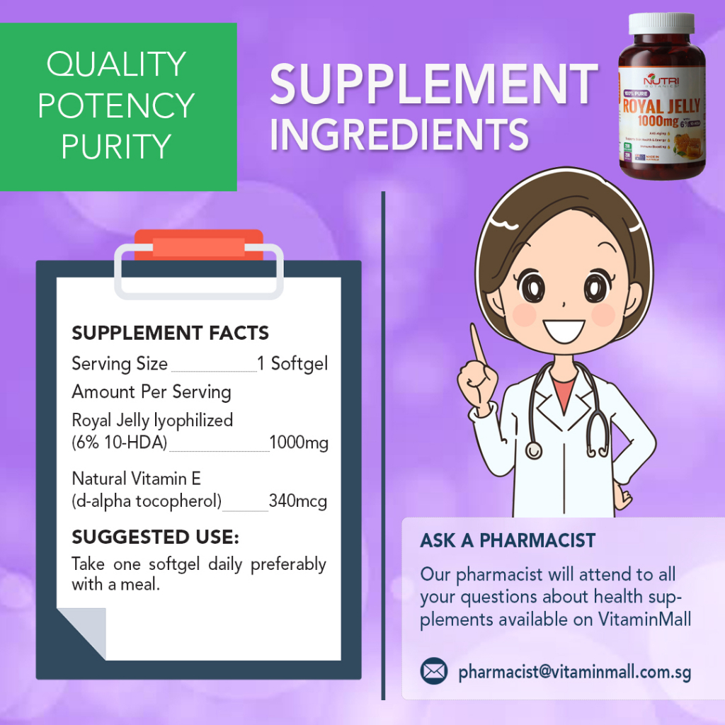 Suitability:Yes Performance:For better immunity & complexion Resuming taking RJ supplements after abandoning them several years as it was cumbersome buying fresh, raw RJ from overseas by delivery by DHL. As this is a decent brand of lyophilised 6% 10-HDA which comes with affordable price & free gift Probiotics full size bottle during 7/7 sales, decided to get it.