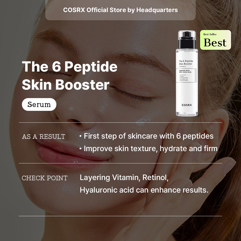 [COSRX] The 6 Peptide Skin Booster Serum 30ml, 150ml, Skin Flooding, Smooth Fine Lines & Firmness, Collagen Boosting & Plumping, Restores multiple skin concerns,