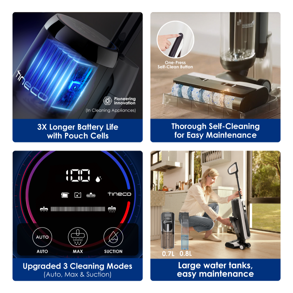 Best Feature(s):self cleaning Performance:excellent, easy to maniuver Value For Money:Absolutely This is every busy woman best cleaning device. Literally 2in1 vacuum & mop at the same time! The vacuum is really quiet compared to other brands. It glides smoothly and its not heavy. Cleaned the whole house in a breeze. I have 5 cats , their fur ,litter mess, food mess plus my hair falls. This vacuum cleans it all. As the water tank is really small, I had to top up water 2x to clean my 4 rm. But it's not a big deal. The clean effect is superb. The floor feels so smooth and really clean. The detergent smell is good too. Very mild scented. I was shocked to see the gunk after cleaning the tank. Hahah.. dirt which I can't see and don't know where it came from. So yes, it's amazing. Highly recommended. This vacuum talks to you. It will let u know when to clean water debris, when to start self cleaning. So no worries . No need to check anything just wait for instruction from the vacuum.
