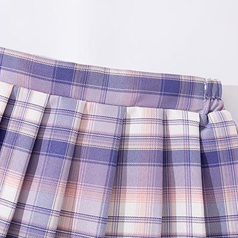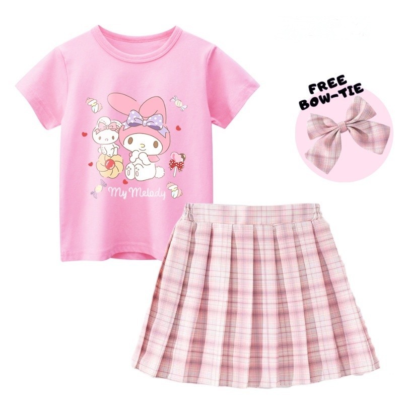 Colour:true to picture Material Quality:soft and comfortable The skirt pleats are nice and tee is good. Not too thin and the collar not too wide. My girl height is 117, tee Is a bit big but skirt a bit short .