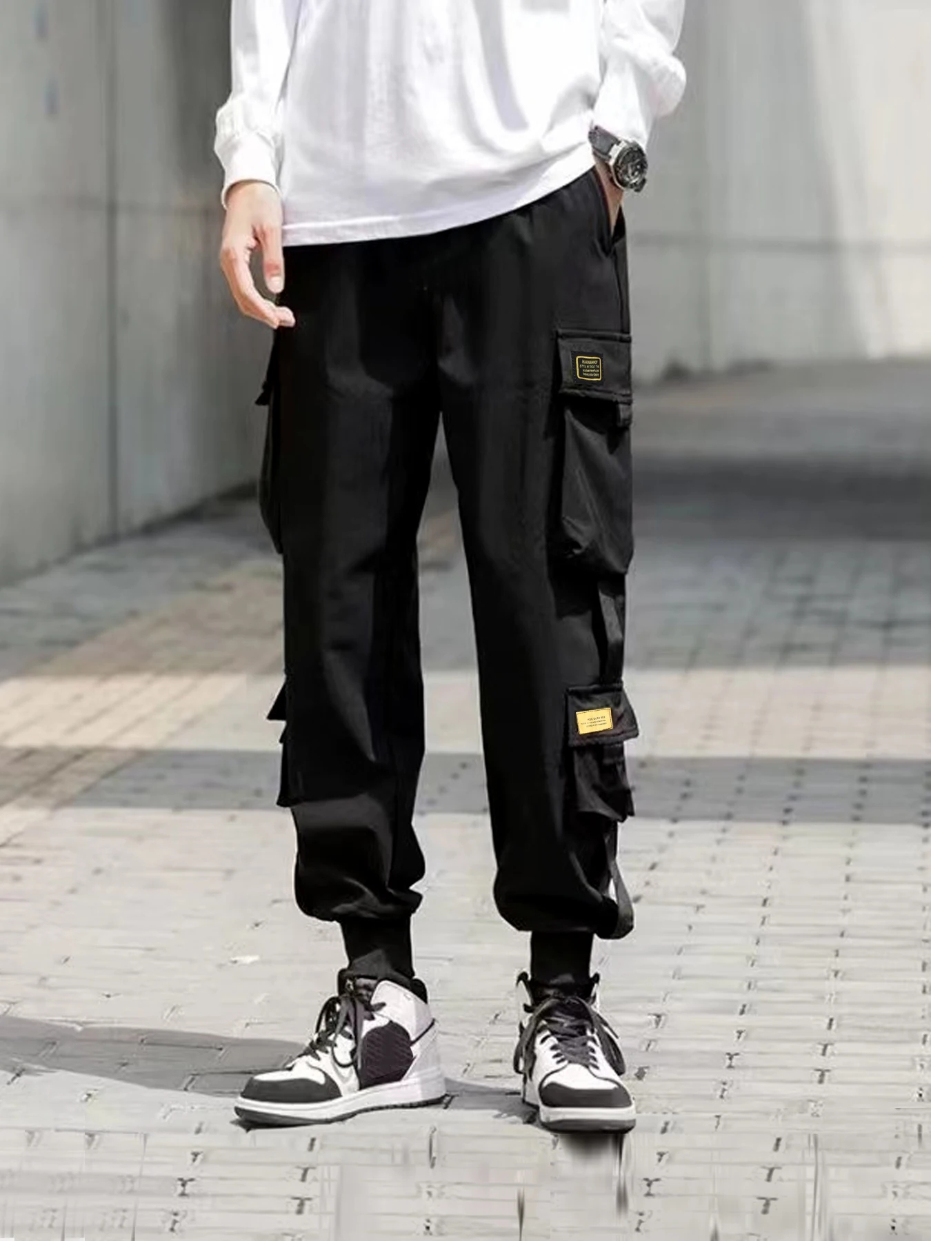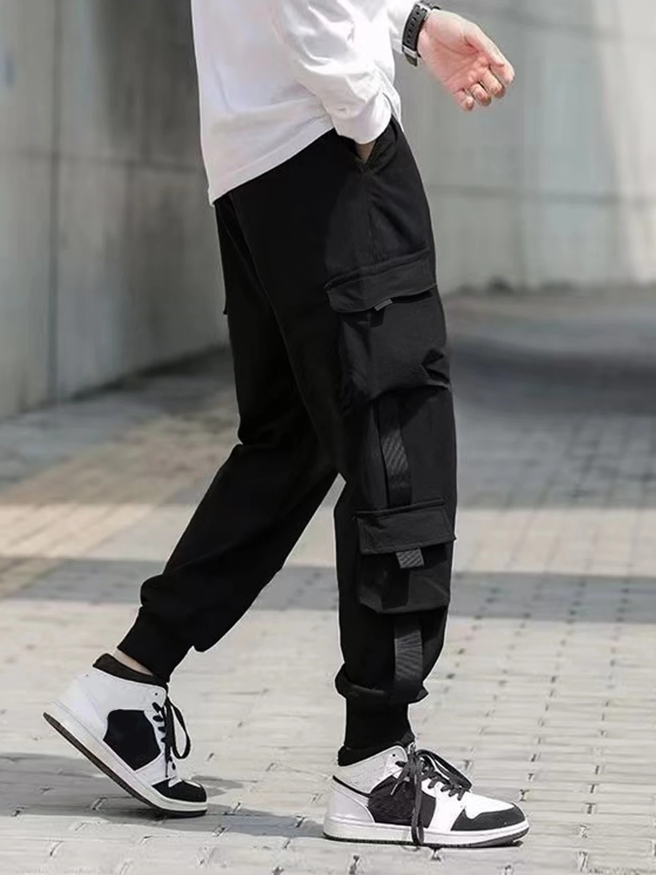Korean Version Trendy Work Pants Preppy Style Design Contrast Color Overalls Men's Leggings Straight-Leg Pants Sports Casual Pants All-Match Thin Style Ankle-Length Pants Spring