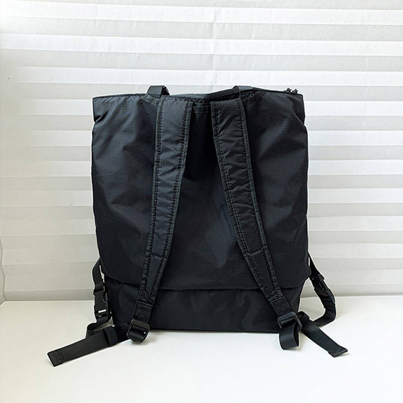 Durability:looks good Material:nylon, light weight The bag can use as backpack, hand carry or shoulder carry. It's 40cm x 44cm, I remember the same bag at Uniqlo is bigger a bit, still the size is acceptable, can put a lot of things, I wish it can be bigger a bit tho. It is light weight since it made by nylon. Friendly reminder: I ask question to the seller and they rarely respond. So be warned about that.