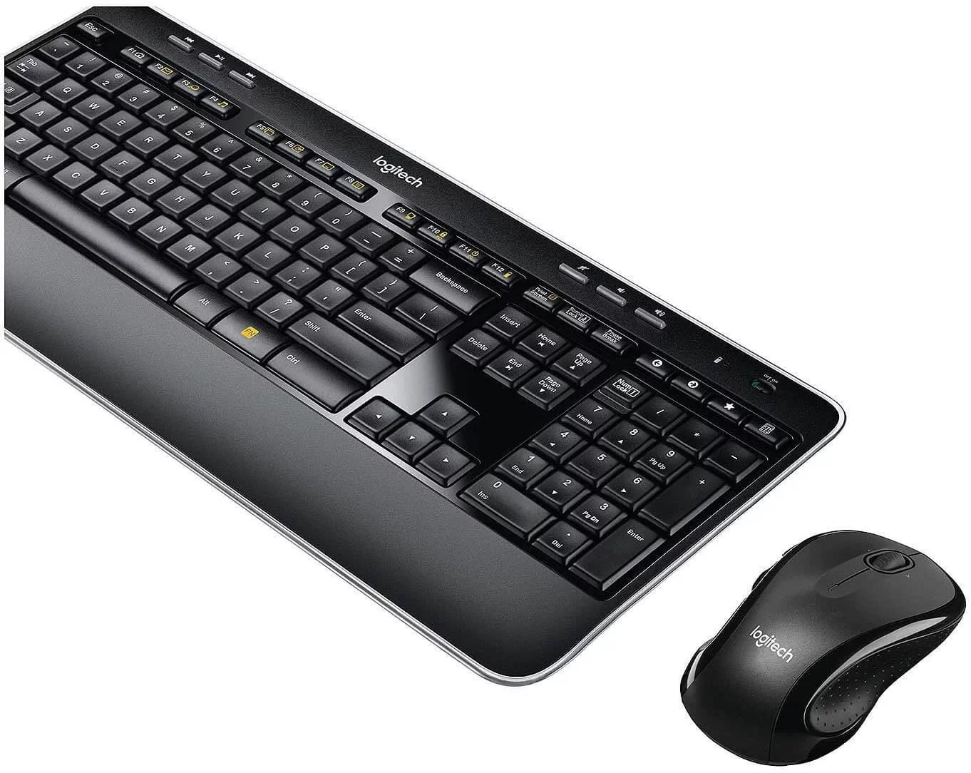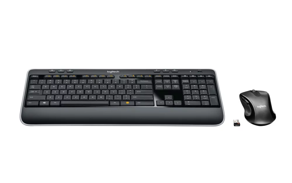 The Logitech Complete Wireless Combo puts convenience and control comfortably at your fingertips thanks to its full-size keyboard with concave keys and hand-friendly, contoured mouse. The keyboard’s full-size layout gives you the room you need to type comfortably with all the keys where you expect them to be. The concave design and softly rounded edges of the whisper-quiet, low-profile Logitech Incurve keys position your fingers properly and invite your fingertips to glide from key to key, hour after hour. The palm rest gives your hands the perfect place to rest when you’re not typing. And you can store your keyboard standing up to free up space on your desk when you’re not using it.
