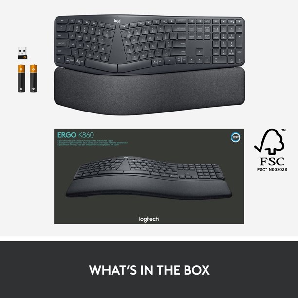 Logitech ERGO K860 Wireless Ergonomic Keyboard - Split Keyboard, Wrist Rest, Natural Typing, Stain-Resistant Fabric, Bluetooth and USB Connectivity, Compatible with Windows/Mac - Graphite