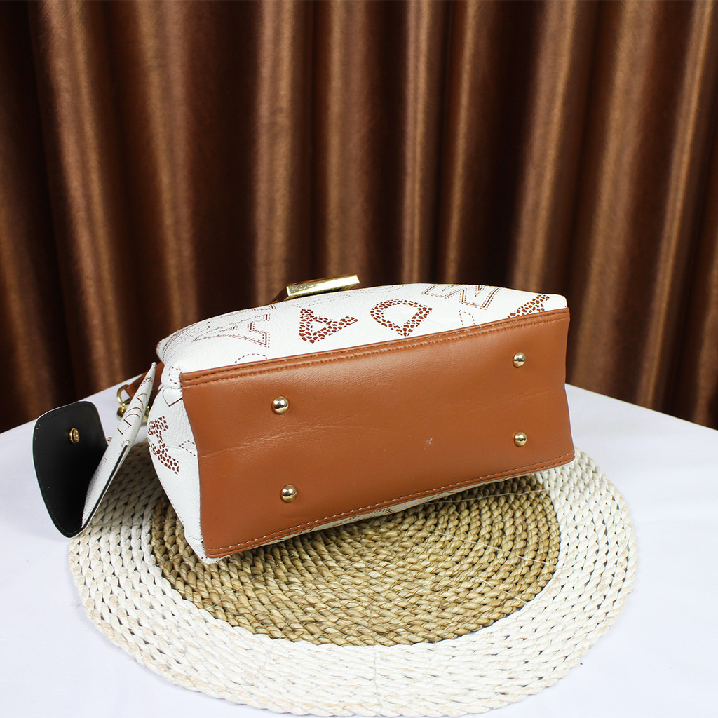 Colour:nice Material Quality:soft, sturdy White looks elegant. The grey, kaki, material is soft. Both designs can be hand held or sling across. The ring hooks on the white are thicker and grips better. The ring hooks on the grey, brown bags are smaller and chain up looks elegant when hand held. Arrive on time.