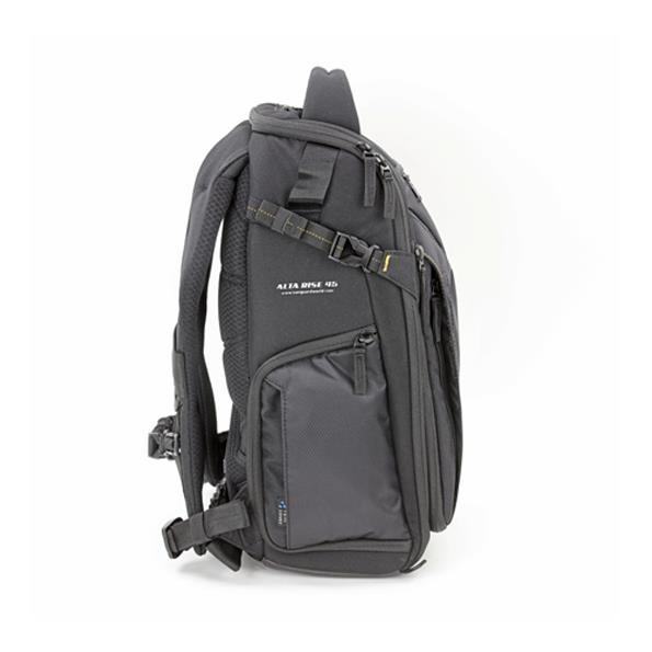 En ambos modos de tamaño, ALTA RISE 45 garantiza una protección acolchada. Idealmente, la capacidad está diseñada para sostener un Pro DSLR, 4-5 lentes (hasta 24-70 mm f / 2.8) un flash y accesorios en el gran compartimento dedicado de la cámara, y cuando el ancho +6 se expande puede utilizar la longitud completa compartimento acolchado para guardar objetos personales o llevar una computadora portátil o tableta de menos de 9.7 ".