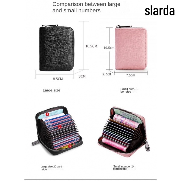 Material Quality:Smooth zip, good PVC material with plenty of card slots Colour:Brown As always, smooth and fast delivery. A simple card holder wallet, able to hold standard ID, bank or credit cards, cash or receipts. Material is not thin or flimsy. Not too sure about RFID anti theft ability though as I managed to use my phone's NFC to detect my ezlink card inside the wallet, haven't tried on CC yet. Overall, a good product, definitely worth the price! ?
