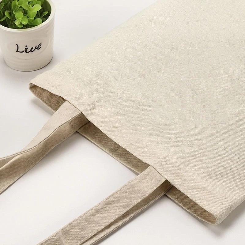 Plain Creamy beige black Canvas Tote Shopping Bags,Foldable Reusable Fabric ,Shoulder Top Eco Gift,logo+pictures