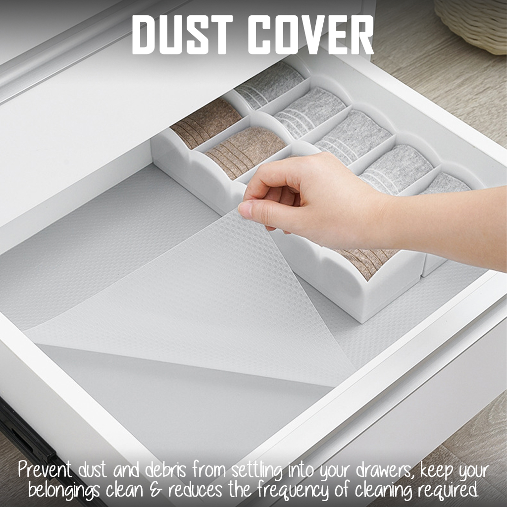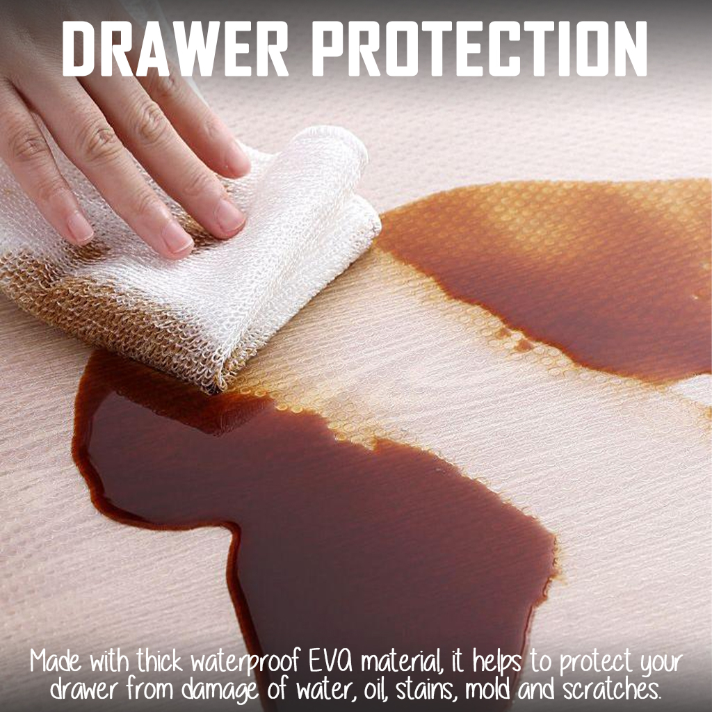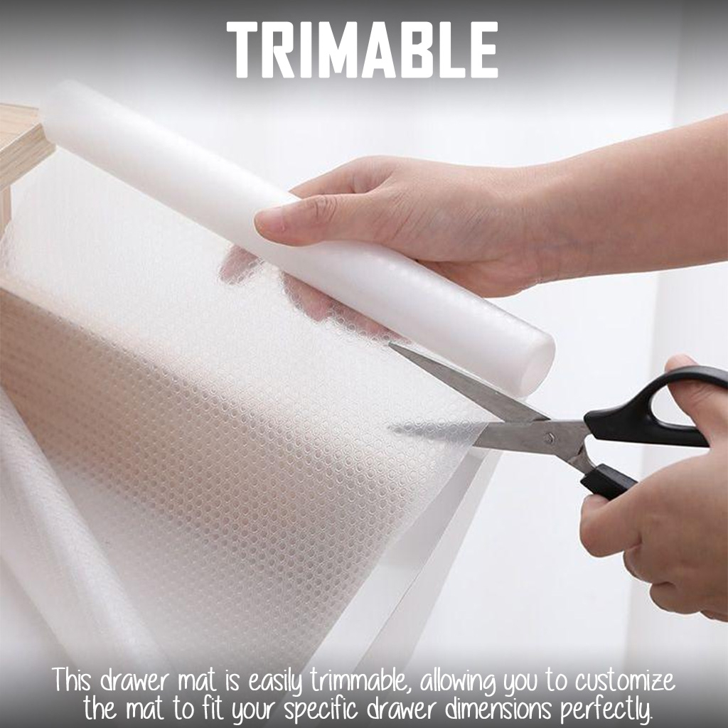 Quality:Good Suitability:Good Performance:Good Received product within 1 week, consider fast for oversea shipment. Tried on my new cabinet, fit well and easy tocut according to the size of the drawers. Thanks seller.
