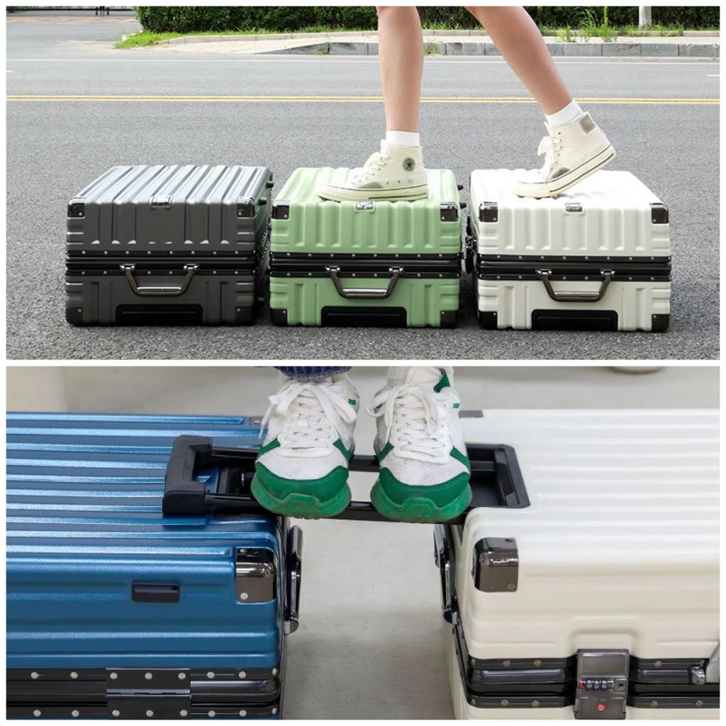 Colour:Silver Material Quality:Aluminum Received our parcel with good condition. Super love our luggage. Very premium. Stylo. Wheel are smooth. Best part.. u can hook ur bag at luggage.
