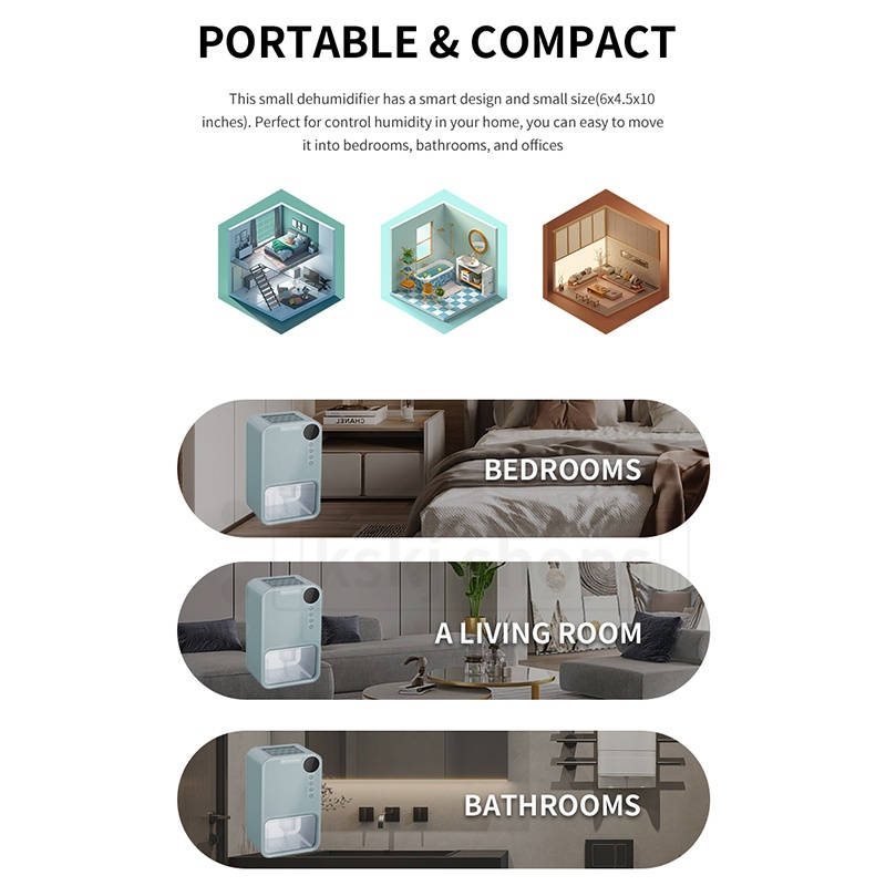 SG Stock Home Wired Dehumidifier Air Purifier With Night Light Quiet Household Cycle Dehumidifier 1100mL Auto shutoff 除湿机