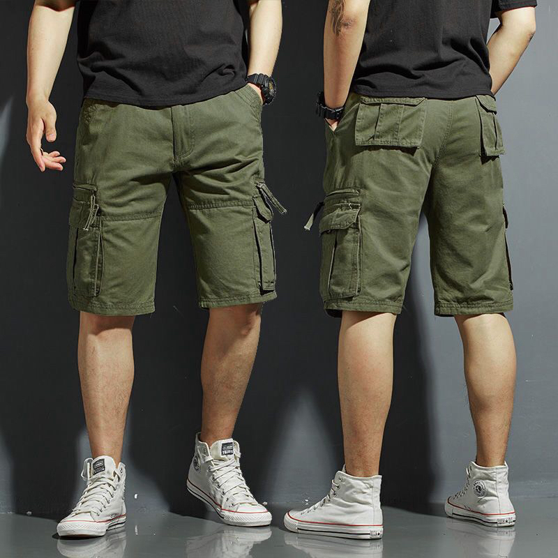Short Pants CARGO Short Pants Multipocket Can Wear Waist Strap zip Breathable Pants 100% Cotton Casual Plain