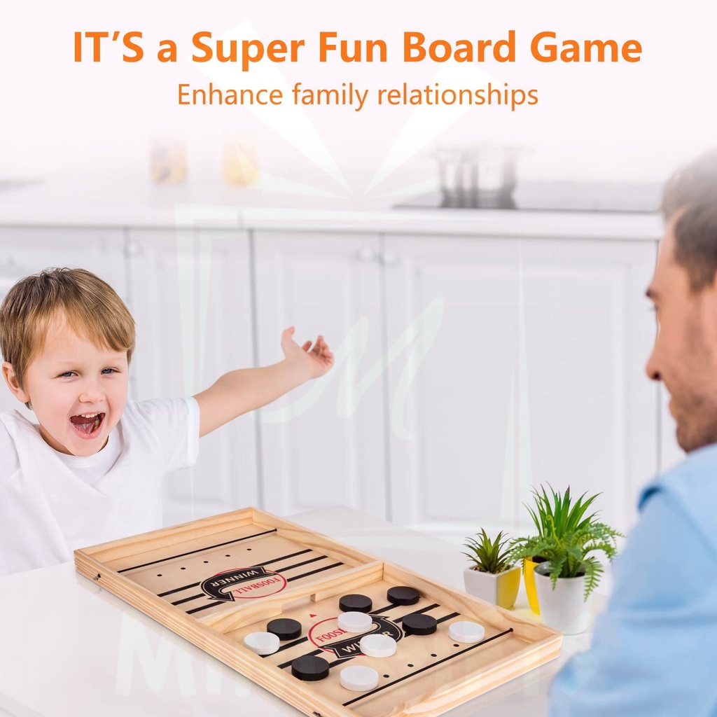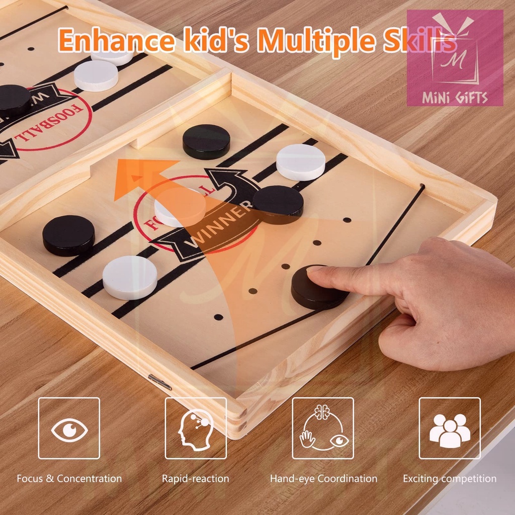 Very fast delivery and item is well packed. A very fun and challenging game with my children. This game needs to focus in order to shoot in the hole.