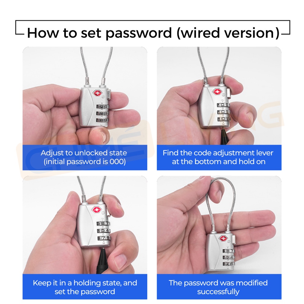 TSA Luggage Metal Lock PIN 3 Digit Combination Padlock For Travel | Anti Theft Customs Suitcase Bag Secure Cable Lock