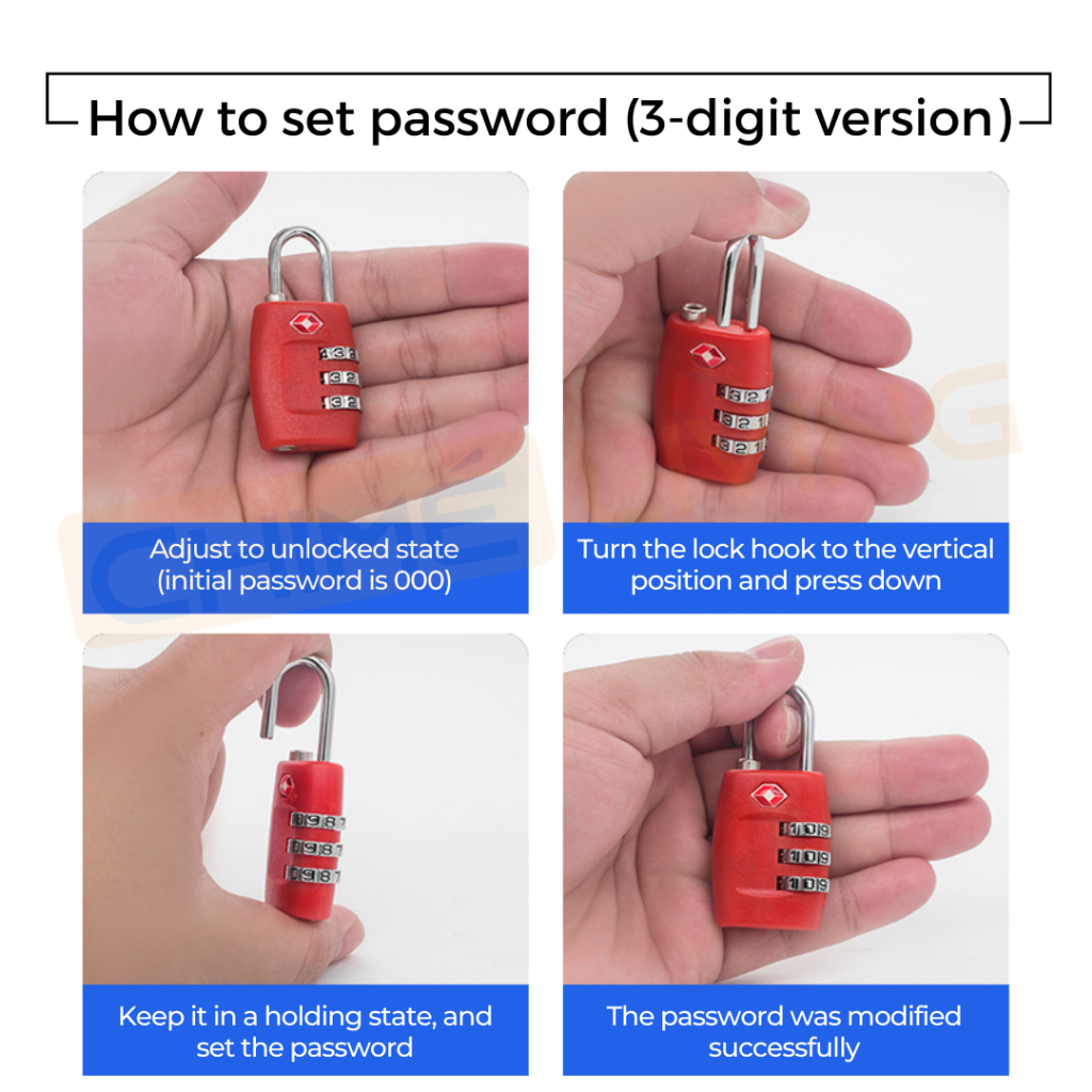 Colour:Pink and blue Material Quality:? Like the version with the longer lock so that i can lock the zipper together with the handle of luggage. As zipper still can be opened with a pen.