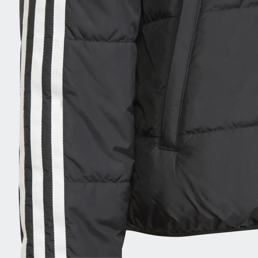 Cold weather? Who cares. You're heading out anyway and you're not going to compromise on style. Zip into this juniors' adidas hooded jacket and keep your day on track. The soft padding insulates against the cold. If the sun peeks out? The detachable hood comes off easily. This product is made with Primegreen, a series of high-performance recycled materials.