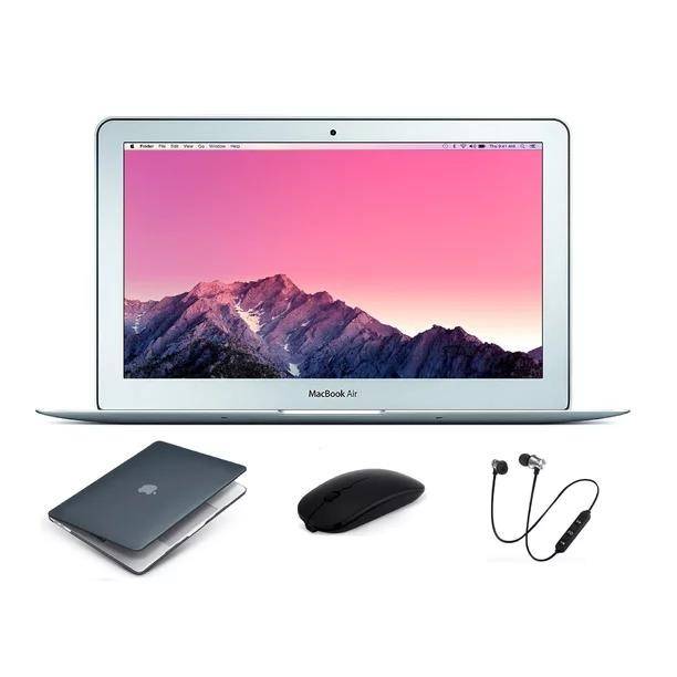 The 11.6" MacBook Air Notebook Computer from Apple is an ultra portable notebook computer with a thin and lightweight design. The computer is powered by a dual-core 5th-gen, low-voltage Broadwell 1.6 GHz Intel Core i5 processor and has 4GB of on-board 1600 MHz LPDDR3 RAM. Graphics are provided by integrated Intel HD Graphics 6000. The MacBook Air is housed in an aluminum unit body enclosure, which is as strong as it is light. Because it is cut from a solid block of aluminum, the housing is stronger than those found on laptops built via traditional means. At 11.6" in size, the 16:9 display features a native resolution of 1440 x 900. It features a glossy finish and LED back-light technology for enhanced image quality and energy efficiency. The system is loaded with 128GB of flash storage rather than an old-fashioned hard drive. Flash storage doesn't just give you a lighter, thinner computer. It also allows for impressive battery life up to 9 hours of web browsing and 30 days of standby time. This is a certified refurbished product which has been tested to be in great working condition. Product may show signs of use and cosmetic blemishes.