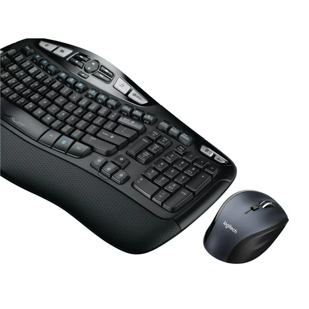 Compare with MK550 and MK570. The unique wave design guides your hands into the best position and conforms naturally to your fingers. Easy comfortable whisper-quiet typing without a learning curve. A large cushioned palm rest helps position your hands properly on the keyboard and offers a comfortable place to rest them when not typing. Right-handed comfort mouse with generous contoured design, soft rubber grips and an advanced scroll wheel for hyper-fast or click-to-click scrolling. Walmart only derivative to the beloved Logitech MK550.
