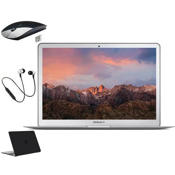 This Apple MacBook Air comes in Silver. It has an 13.3-inch widescreen TFT LED backlit active-matrix "glossy" display with 1440 x 900 native resolution. Powered by Intel Core i5 and Intel HD Graphics. Solid State Drive (SSD) capacity of 256GB with 8GB of RAM. Bundle includes Black Case, Bluetooth Headset, and Wireless Mouse! This device has been tested to be in great working condition. It will show signs of use and cosmetic blemishes which may included some scratched/dings, all of which do not affect the usability of this device.