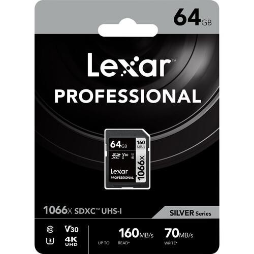 Diseñada para cámaras sin espejo y DSLR, la tarjeta de memoria SDXC UHS-I profesional 1066x de 64 GB de Lexar le permite capturar y transferir rápidamente fotos de alta calidad, incluidos videos Full HD y UHD 4K con velocidades de lectura de hasta 160 MB/s y velocidades de escritura de hasta 70 MB/s. Todo esto le permite acelerar drásticamente su flujo de trabajo. Esta tarjeta también se ha construido con una capacidad de 64 GB y la clasificación de clase de velocidad de video V30, que garantiza velocidades mínimas de escritura de al menos 30 MB/s. Para ayudar a aumentar la durabilidad, Lexar hizo que esta tarjeta fuera resistente al agua, los golpes, las vibraciones, los rayos X y las temperaturas extremas. Un interruptor de protección contra escritura incorporado ayudará a proteger sus datos de borrados accidentales.
